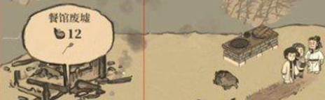 3、此时需要你给他烧饭吃,来到左上角,可以做这个梅菜扣肉,其中锅铲就是在旁边的餐馆废墟里面,可以调查得到。