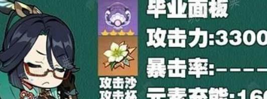 2、如果是鹤鸣余音+翠绿之影4件套的话,毕业面板属性要求为:攻击力4458、暴击率/暴击伤害71/152、元素充能效率127%