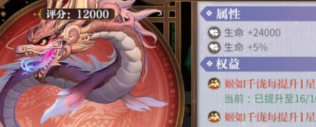 姬如千泷每提升1星,全部英雄生命+2500姬如千泷每提升1星,全部英雄攻击+330
