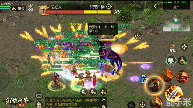 当战场猛将被击败时,会随机掉落幸运神器。获得幸运神器的大侠,可变身为威风凛凛的“战场统领”,获取高额积分加成;而其他帮会的少侠可在限定时间内围攻“战场统领”抢夺幸运神器,夺取变身机会!活动局势瞬息万变、刺激十足,让你感受兄弟齐心,千人同屏激战的壮观和热血!