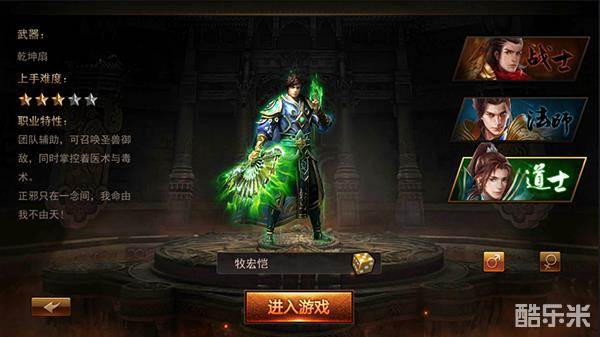 道士:远程魔法全能型,拥有持续伤害能力,和特殊的召唤神兽技能,还拥有治疗和增强防御等辅助手段,大型战斗决不可缺少的职业。