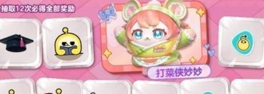 以上就是对于蛋仔派对打菜侠妙妙怎么获得的详细说明,简单来说就是在活动持续期间内上线去做任务,完成任务就可以抽卡,抽12次就能将奖励全部拿到手,时间充足,奖励丰厚。不仅有免费皮肤,还有毕业套装和8款表情包,一定要全部拿下!