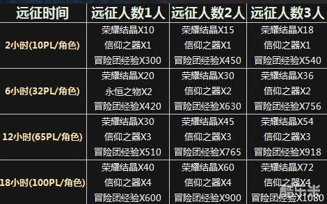 派遣自己的角色去远征即可获得大量的奖励以及冒险团等级经验,时间越长经验越多。