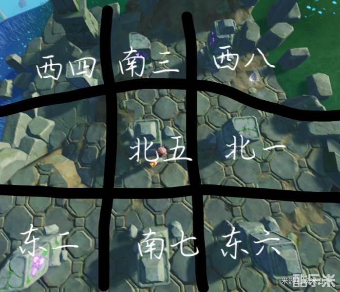 3、如下图所示,调整石碑的方向,分别把石碑对应东南西北;