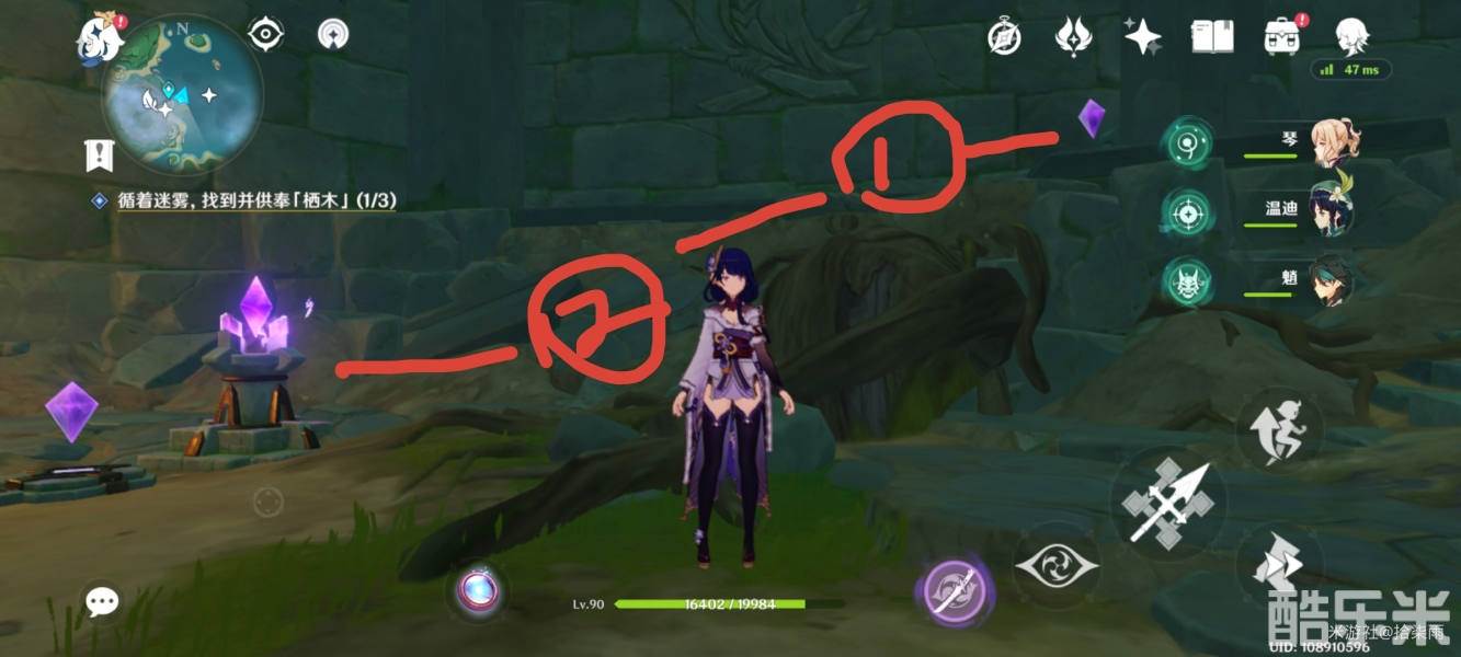 3、如图所示,三个栖木分别在三个山头,完成这个长任务即可驱散迷雾。