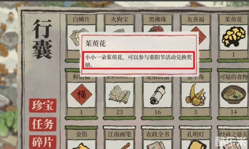 3、游戏中一共就两朵茱萸花,得到之后可以在行囊中查看。