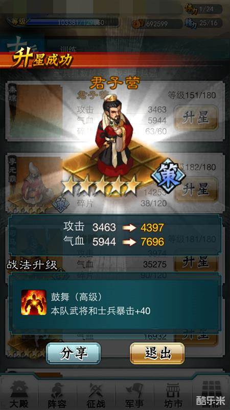 培养士兵的方式很简单,但难就难在该选择哪些进行培养,“陷阵营”、“白马义从”、“武侍姬”就是不错的选择哦!