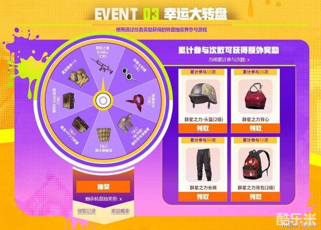 为了让玩家们充分感受到派对的欢乐氛围,PUBG还推出了幸运大转盘活动。使用在前两个活动中得到的转盘抽奖券,就能进行转盘抽奖。这其中包括霓虹之星的SCAR-L皮肤、热情太阳镜、热情丝巾等装饰!累计参与10次抽奖,还有群星之力套装可领!这一活动不仅让玩家们收获了满满的惊喜,也进一步加深了他们对游戏的热爱与关注。