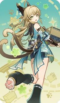 绮良良为出战角色时,我方切换角色后:造成1点草元素伤害,抓1张牌。