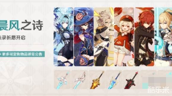 3、卡池中有3位五星限时角色和4把五星限时武器。