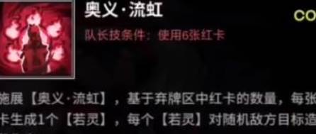 首先先讲讲她的大招,释放之后,可以将所有卡牌里的红卡全都抛弃,并且每张卡都能生成一个精灵,每个精灵都给你随机对敌方目标,造成一次伤害,相当于召唤师,打法比较新颖。不过缺点就是爆发不足,适合打持续性伤害,很无解。
