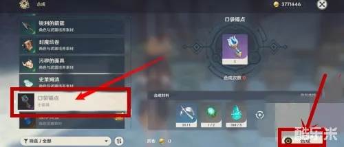 3、在合成台页面,点击上方的“合成”选项,然后在列表中选择“口袋锚点”。在确认所需的材料无误后,点击“确认”即可开始合成。