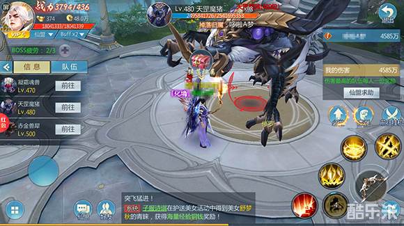 大家在打BOSS时,可通过右侧的伤害排行看到自己队伍的伤害,如果有需要,还可点击仙盟求助按钮,让其他盟友过来帮你打BOSS,加快速度;