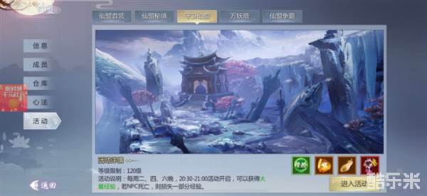 仙盟内部守卫型活动,产出经验相当客观,经验的很大部分比例在活动胜利后的结算上,所以最好是能够去到完胜通关的仙盟,才会获得最高的奖励。在活动中,也是需要佩戴小魔童、使用多倍经验丹才能获得最大收益。