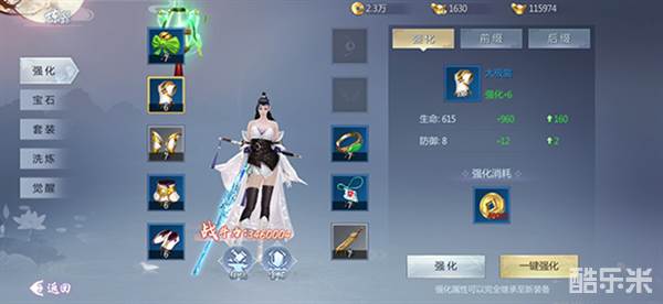 强化:消耗金币从而强化已穿戴的各部分的装备,提升装备的属性。