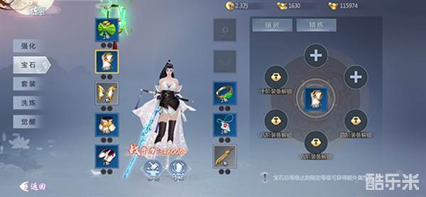 宝石:镶嵌宝石,穿戴高阶的装备可以解锁更多的宝石孔同时解锁宝石精炼,镶嵌宝石等级越高,提升的战力越多。