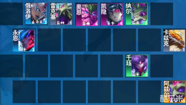 1、阵容成员:千珏、纳尔、雷克塞、卡兹克、永恩、俄洛伊、凯隐、奥恩、阿兹尔