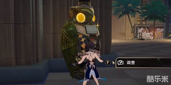 3、穿过台阶后我们来到自动取款机前,点击调查;