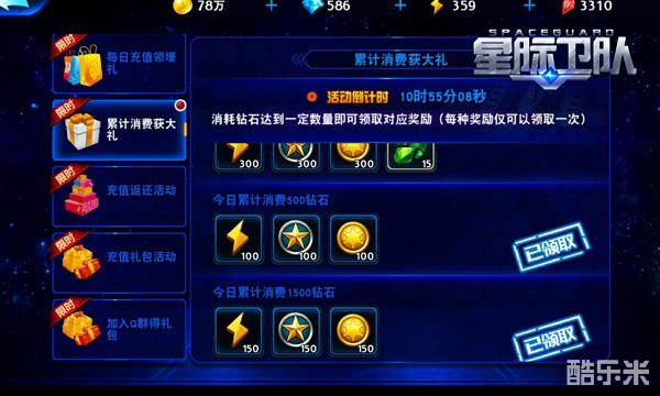 在后面就是消费活动啦,只要你消耗钻石就可以领取奖励,海量的体力让你拿,第一天如果能拿到这些体力对特工的培养会有很大的影响的,两两相扶,就算你不花钱,也有机会称王称霸!