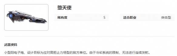 《艾塔纪元》堕天使图鉴介绍,小型阳电子炮,设计目标为应对高拒止力场型的敌方单位的武器,下面给大家带艾塔纪元堕天使图鉴介绍,有需要的小伙伴一起来看看吧。各位玩家可以参考一下。