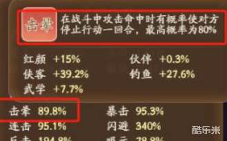 注意要点:战斗抗性意味着影响战斗属性的发生概率,但需注意战斗场内的侠客、伙伴技能、功法技能加成能影响面板上属性。