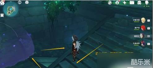 1.首先,运行原神。来到水月池底,找到石碑机关,开启退水机关,就可以继续沿着缺口下去。