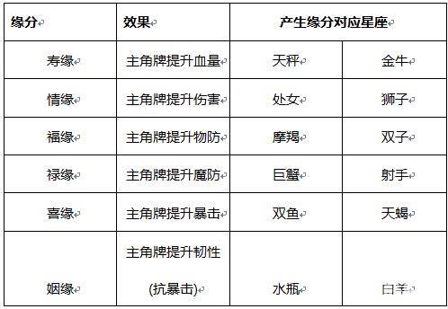 首先我们通过副本掉落,天赐,合体会获得玩家牌。这些牌除了拿来培养,还可以用于牵缘,牵缘的过程会有些小惊喜的产生,我们一边听着萌妹子帅锅的语音签名,有几率还会得到体力和花币!快去牵缘看看你和这张牌的缘分吧!12个星座一共有6种缘分。