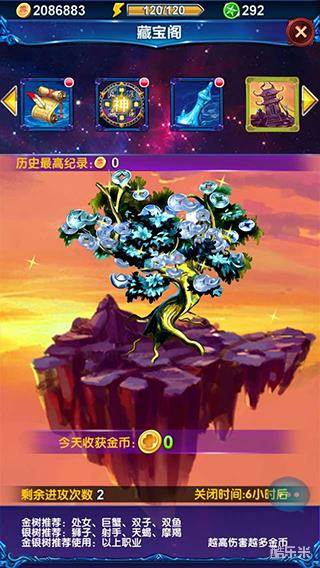 l 如何躲过金树银树火神大招:金树银树还会放神技,一不小心被击中,那不好意思,你只能获得很少的金币还耗掉15的宝贵体力,想要躲过神技,前期要带两个火神的头框,绝对破金树银树火神神技,让你站的更久,获得更多的金币,后期用3个玄武是最厉害的,几十万的金币可不是盖得。
