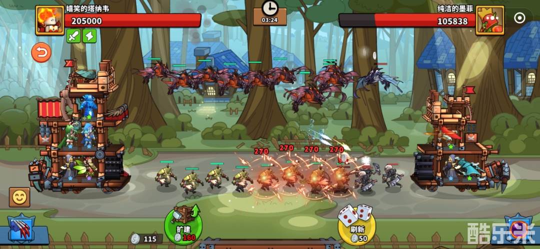 《塔防精灵》这款游戏是以卡牌类玩法为基础,加入了即时策略的塔防游戏。玩法则是最经典的两塔对阵的兵力互撞,但游戏在塔的部分花了一番心思。除了释放兵种之外,玩家还可以在塔中放置所拥有的英雄卡牌,不同的英雄之间拥有技能和攻击方式的差距。