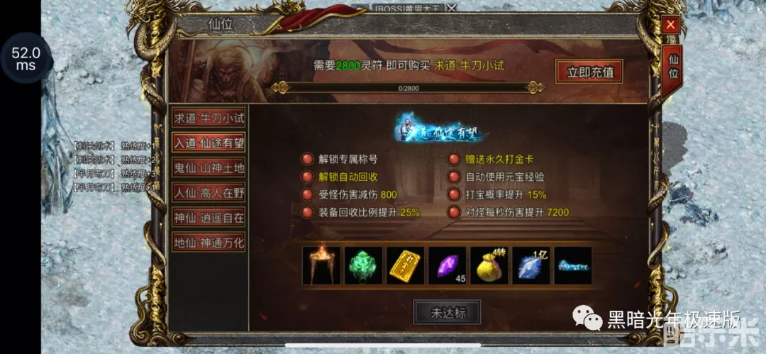 对于小资玩家而言,可以考虑先入手入道·仙途有望档位,这样可以解锁入道·仙途有望,同时获得首充礼包中的杀神·三尖两刃刀。此外,您还可以直接升级VIP等级至VIP5,从而大幅提升10%的打宝效率和25%的装备回收比例,并解锁随身仓库特权和随身回收特权。如果条件允许,可以考虑解锁鬼仙,因为鬼仙会赠送自动拾取的宠物。在游戏初期,优先提升法器是个不错的选择,因为它可以增加减伤和对怪物的伤害加成。
