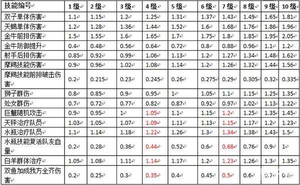 金牛,摩羯,水瓶的技能都是有其他效果的,技能的提升也会提升相应的效果,比如:金牛后期可以对自己加120%的防御,摩羯可以对前面队员造成额外33.5%的破击伤害(破击伤害是不计防御的),水瓶复活队员100%生命。