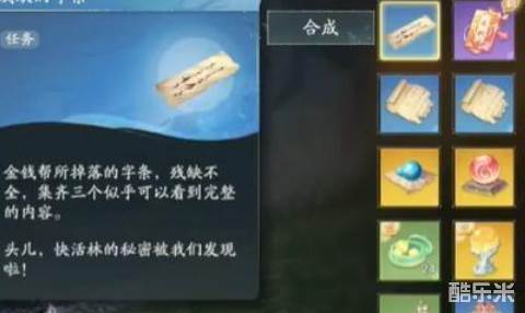 (1)这个密室稍微复杂点,需要拿到金钱帮密信,在下图中分别三个坐标打到三波金钱帮小怪获取后合成。