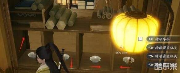 (1)来到长庆楼,我们直接上二楼,找柜子上有三个碗的小房间,查看字条,转动碗的缺口即可开启长庆楼密室。