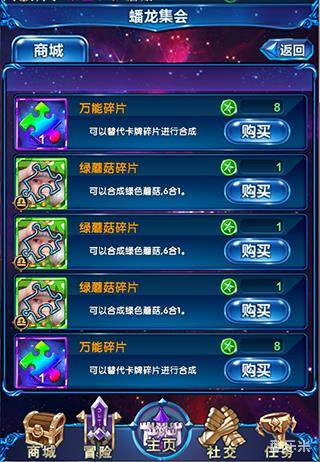 产出:蟠龙集会每层产出不一样,最上面层次产出物品会更好,前四层主要产经验卡蘑 菇,体力药水是战神集会的高产物品,小几率产觉醒卡碎片,高层主要是装备的产出,