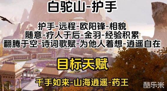 目标天赋:千手如来-山海逍遥-药王,这些天赋可以有效的帮助你更好的辅助治疗队友,提升队友的血线。