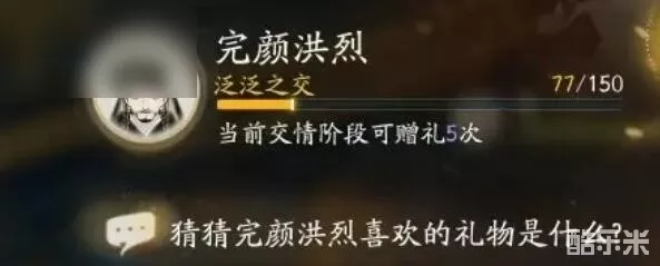 《射雕》是网易游戏推出的一款全新大世界武侠冒险RPG手游,游戏中我们可以结识不同的侠客,赠送对应的礼物可以提升他们的好感度!其中射雕完颜洪烈喜欢的礼物是什么呢?今天酷乐米小编给大家带来了《射雕》完颜洪烈喜欢的礼物分享,射雕完颜洪烈礼物线索:六稻、兵法阵图、端砚、道德经、孙子兵法、龙泉青瓷、貂裘围脖。