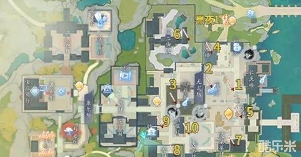 1、射雕剑飞位置如下,大家可以根据点位进行剑飞挑战。