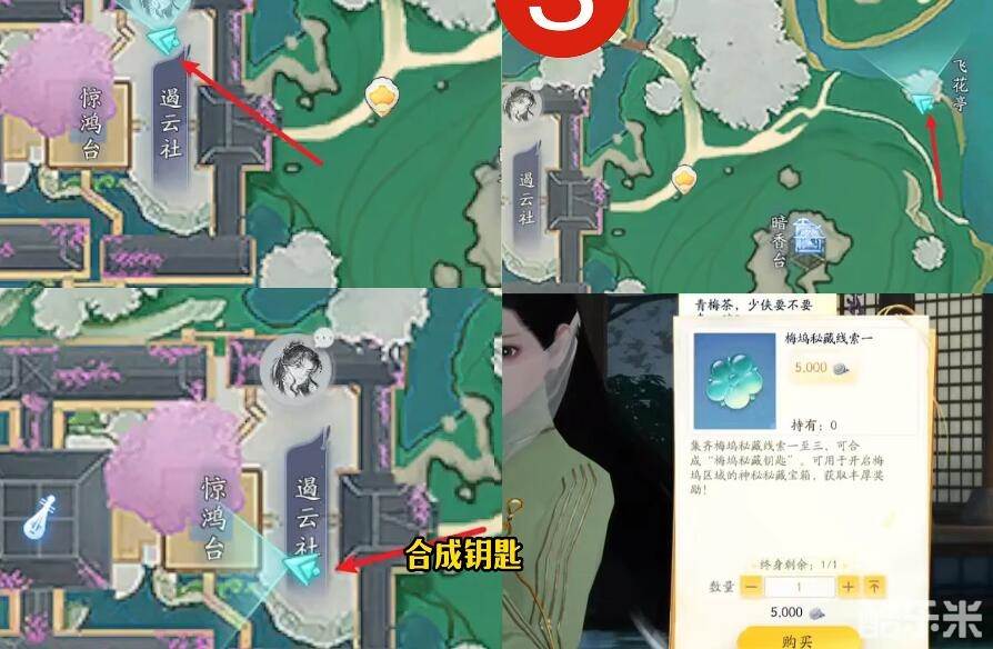 1、首先来到下图所示的位置来购买梅邬秘蔵的线索,并且进行合成。