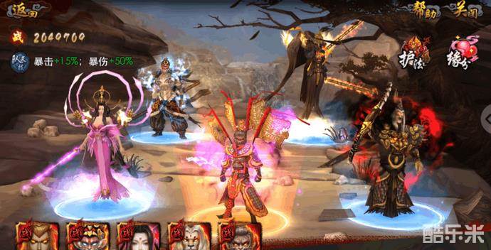 随着等级上升,队伍的位置也越来越多了,最多可以上5个人。卡牌分为物理防御卡,攻击卡和治疗卡,阵容的分配就要看你的喜好啦。前期升级刷孙悟空元神,蓝元神和魔王比较多,可以很快的升星,帮助推图。后面的玩法太多。就不写了。
