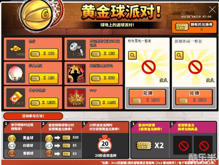 黄金兑换券可兑换活动商品。每个奖励都有兑换次数限制。3V3匹配赛/俱乐部联赛中才会出现特殊球。