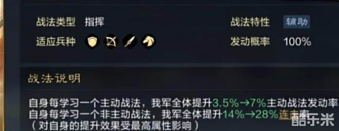 3、兵书:【紫·机动】,发动率+3%。【紫·先机】,17%概率跳过准备回合。【紫·稳重】,发动准备,清自身负面。
