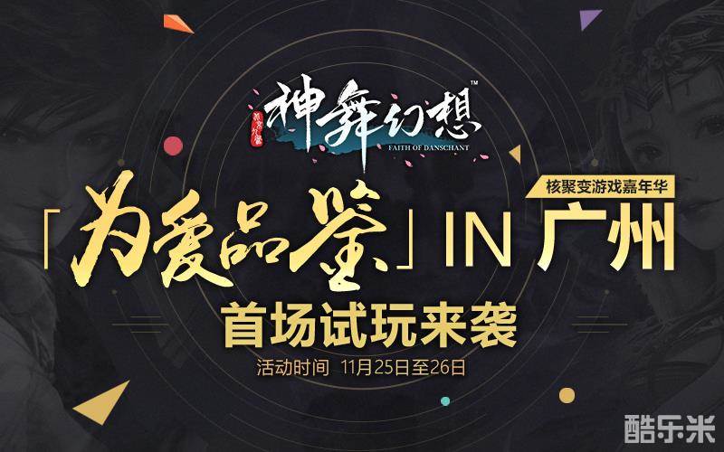 12月,国产单机新作《神舞幻想》即将发售,为了让大家可以先行从剧情、玩法、画面、音乐等全方位立体地感受游戏乐趣,我们将举办「为爱品鉴」系列试玩活动。本次试玩活动的第一站,即是11月25日在广州举办的核聚变游戏嘉年华活动,凡到现场参与《神舞幻想》试玩的玩家都将获得一份精美的《神舞幻想》周边礼包!现在前往《神舞幻想》官方微博参与活动,更有机会获得广州核聚变游戏嘉年华双人门票!