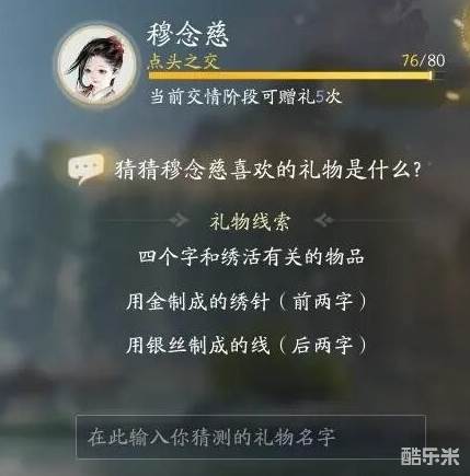 射雕穆念慈喜欢的礼物是什么呢?穆念慈是神雕里的人物,许多人都好奇射雕中这个角色需要什么礼物才能攻略,下面是穆念慈最喜爱的礼物的名字,感兴趣的玩家千万别错过了。
