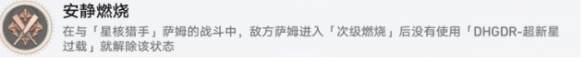 在与星核猎手萨姆的战斗中,敌方萨姆进入次级燃烧,后没有使用DHGDR-超新星过载,就解除该状态