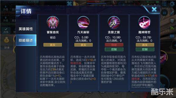 解析:一技能是吕布主要的伤害技能,附魔后的真实伤害让吕布能够打出高额的输出。