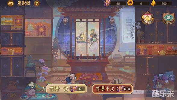 1、开始游戏后,玩家可以在墨影阁招募卡牌。