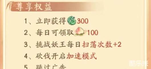 2、福利:终身卡一天可以领取100绑玉和100个桃,月卡只能领取100桃。