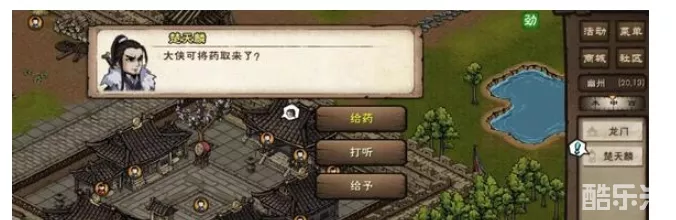 4.在(21,21)对话六扇门捕快,去(20,13)对话楚天麟,再向(20,31)罗有成打听「澄心散」,支付200两获得「澄心散」。