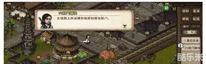 3.去(1,12)→(5,13)→(4,12)对话张洞灵,然后去(6,12)对话六扇门捕快,再去(4,12)对话张洞灵,获得「劲」buff(提升15%防、15%聚气,持续2次),最后去(6,12)对话六扇门捕快。