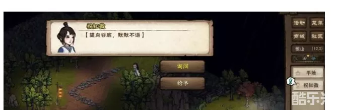 15.在(1,3)触发剧情,去(2,3)多次对话楚仙仙,再去(1,3)对话曲千秋,剧情后触发战斗。在(2,3)对话张洞灵,获得「瓷瓶」,将其给予祝知微(3,4),去(4,3)查看楚仙仙,最后原路离开。(中间选择「答应」!!!)
